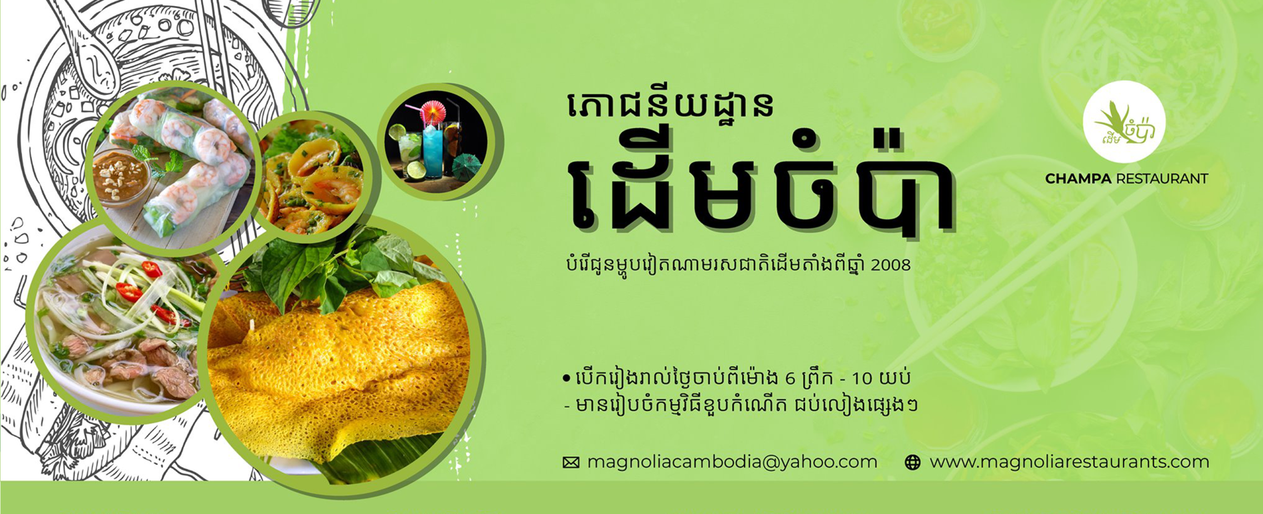 My name is Lee, and I am the Founder of Champa Restaurant, which opened inns in 2008 at No. 55 Pasteur Street, corner of Street 242.
